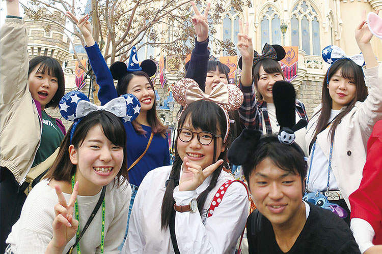 「ゲストサービス」の授業の一環として、テーマパークへ足を運び、研修を行います。事前に様々なゲストの状況を想定したプランをグループで作成し、当日はプランニングシートに基づいて実際にパークを巡り、検証と振り返りを行います。
