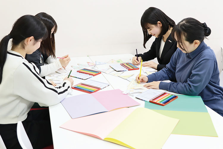 プレゼンテーション、ペアワークやグループ活動など課題解決をベースとした発信型授業でさまざまな価値観に触れ、豊かな視点と広い視野を身に付けます。