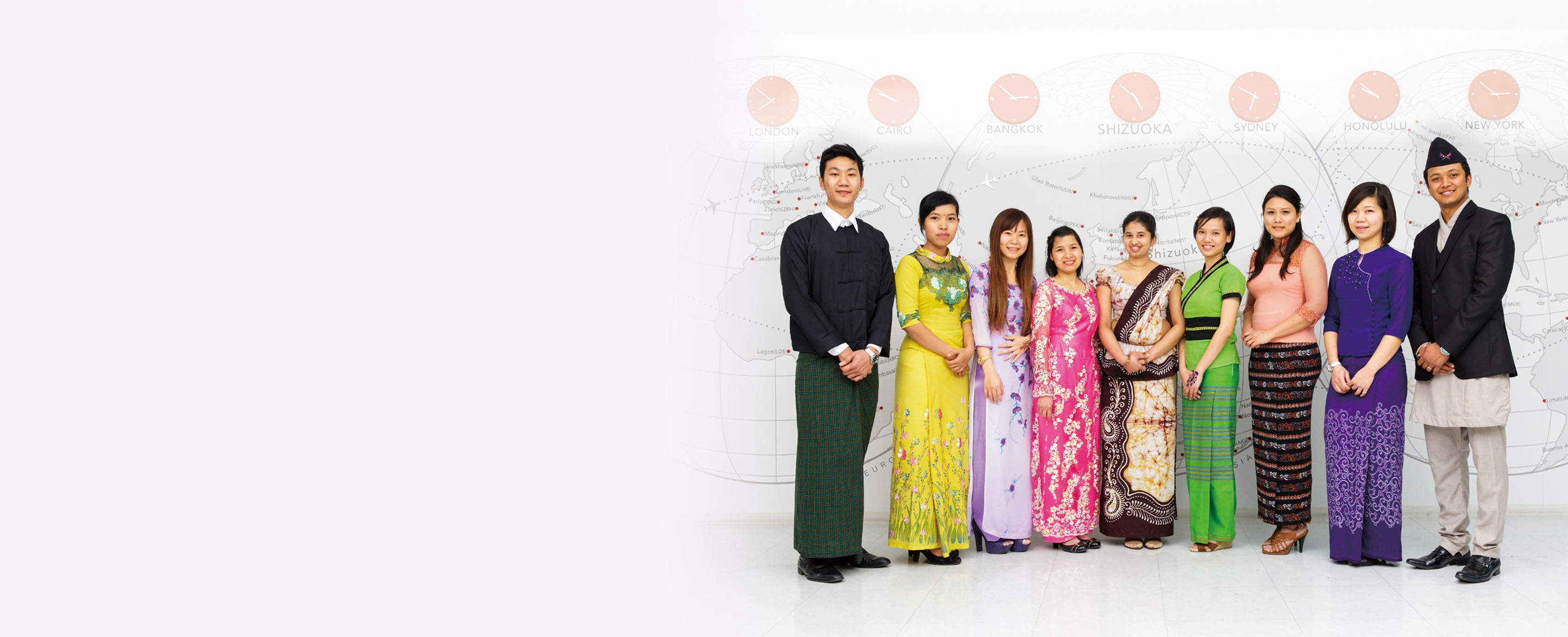 主に海外からの外国人留学生を対象とした学科です。「世界を舞台に活躍したい!」「日本と母国の架け橋となる仕事に就きたい!」そのような学生の想いを実現するために、3年間かけてじっくりと学ぶことができるスタイルとなっています。3学科の中から選択する専門コースの専門教育はもちろん、日本語、英語、マナー、ICT教育など、どの業界でも必要となる力をバランスよく身に付けていけるカリキュラムとなっています。