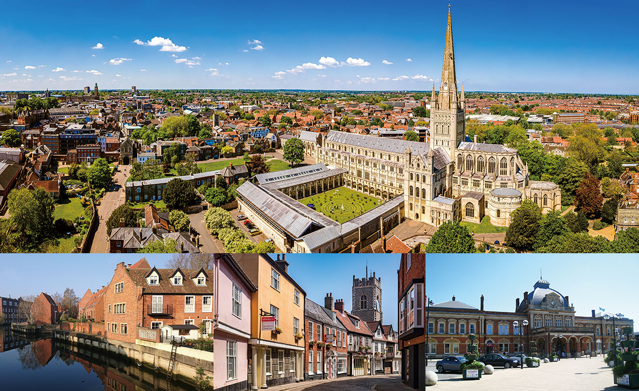 留学先であるイギリス・ノーフォーク州ノリッチ(Norwich)はロンドンより電車で2時間ほどの距離にあるイングランド東部、ノーフォーク州の州都です。美しい中世の建築物や歴史的な景観で知られ、「文学の街」としてユネスコに登録され、イングランドでも最も完全な中世都市の一つとされています。アートや文化、ショッピング、レストランなどの施設も充実しており、地方都市ならではの治安の良さがあります。