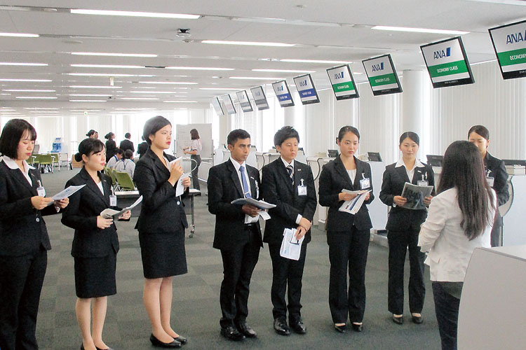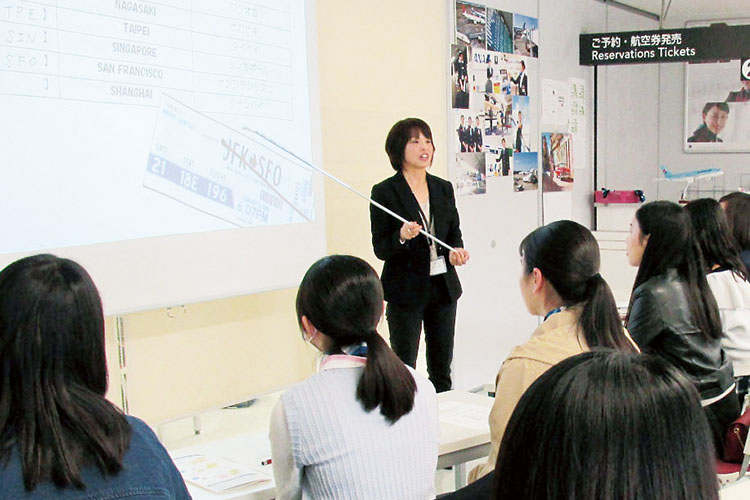 羽田空港や成田空港などを訪問し、関連企業でのセミナー受講やオフィス見学などを通し、チームワークを大切にする空港と仕事への理解を深めます。空港で活躍している本校卒業生の話を聞くチャンスもあります。