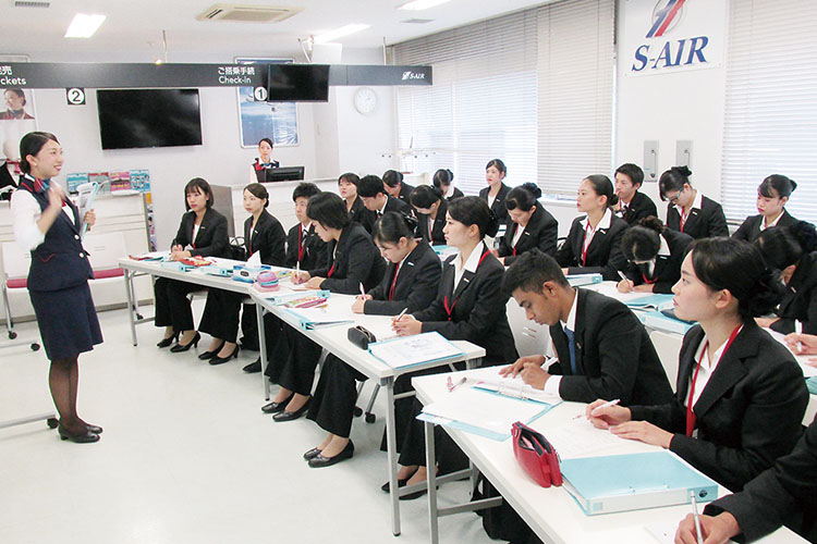 お客様に気づかれない場所でもきちんと整理や清掃するなど、仕事では「おもてなし」「しつらえ」を大切にしています。こうした考え方やスキルは、マナー教育を強みとするS-AIRでの学びがそのまま役立っています。また搭乗カウンターや機内のモックアップを使用した実践的な授業も多く、真剣かつ楽しみながら理解を得ることができました。