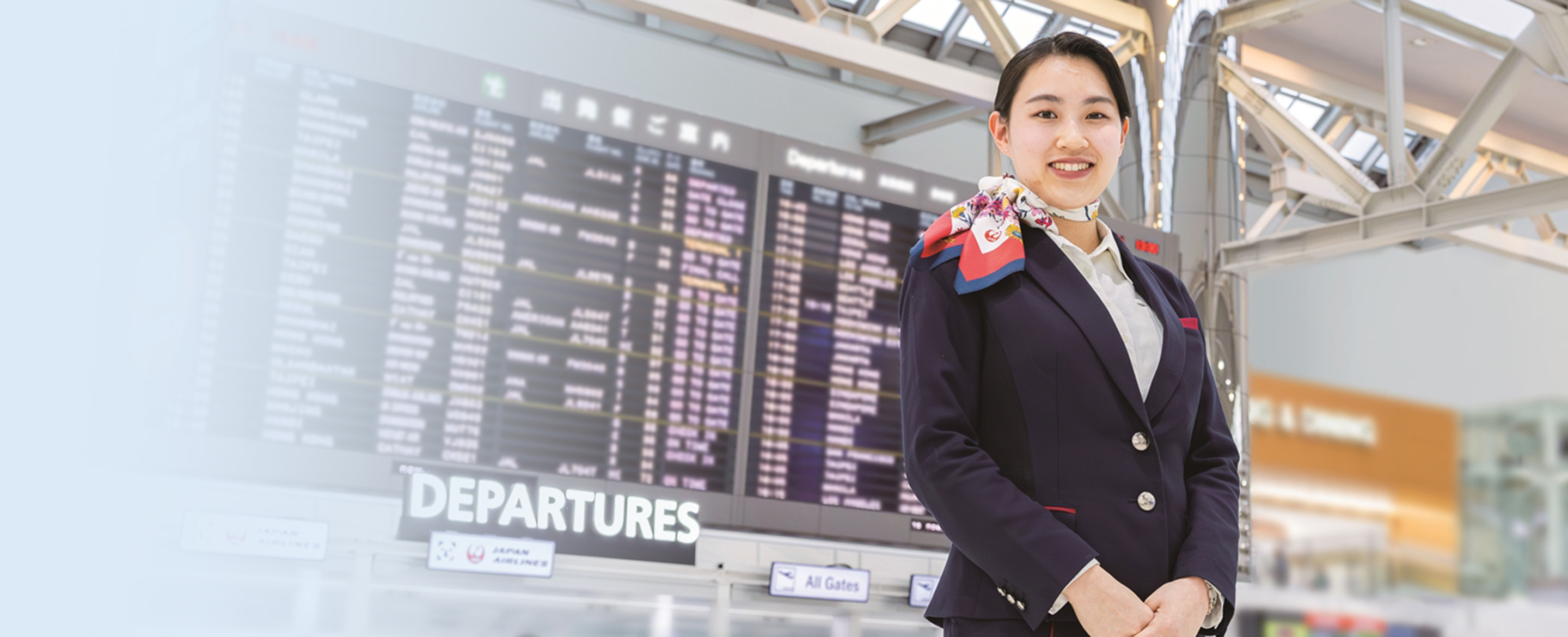 幼少期より空港を訪れる機会が多くありました。そこでお客様を第一に考え、常に新鮮で感動するサービスを提供する姿勢を間近に見たことで、JALのグランドスタッフになりたいと思うようになりました。入社5年目になり、一層責任ある言動が求められる立場になりました。統括力や、迅速かつ的確な判断力を備えたグランドスタッフになることが現在の目標です。