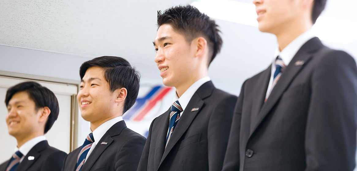 S-AIRでは、身だしなみや言葉遣い、立ち居振る舞いを、学生が入学直後から日々意識し、継続していける環境を整えています。