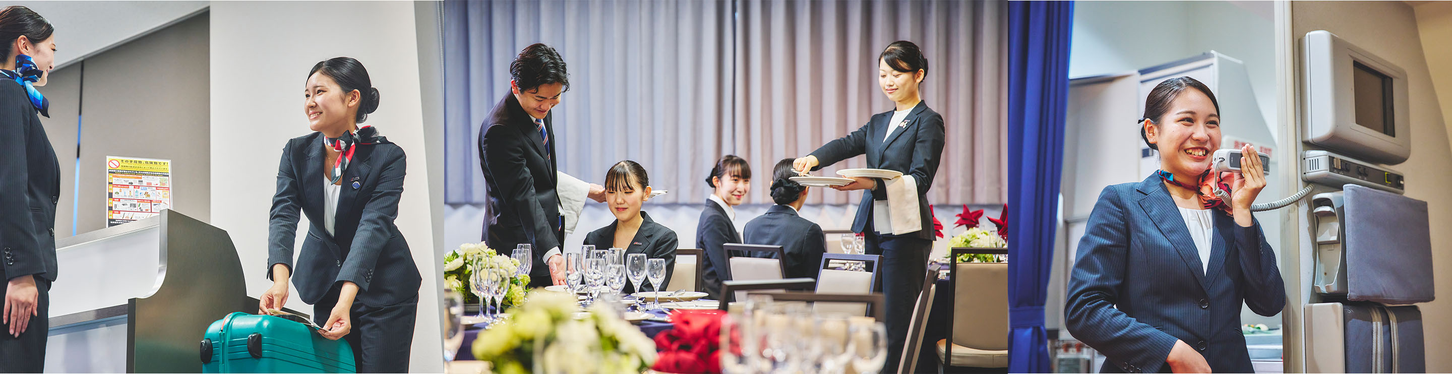 目指す仕事の現場に近い実践的な学習環境と、現場を熟知したプロフェッショナルの教員陣によって、本物のサービスと一流のおもてなしを身に付けていきます。