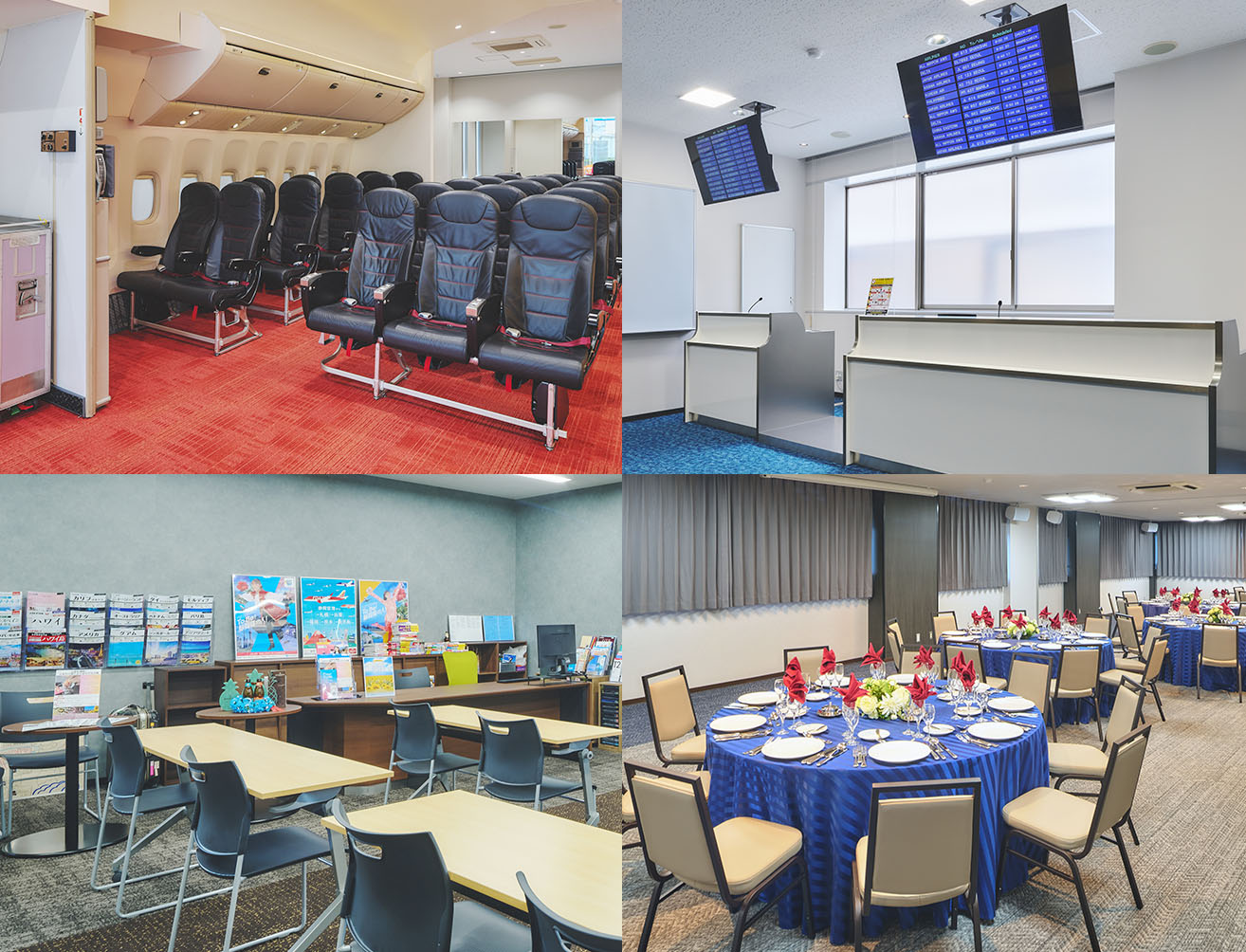 航空機の機内や空港カウンターを再現した実習室、ホテルやブライダルの空間を再現した最新の実習環境が整います。
